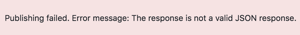 Sometimes the error message would be slightly more helpful: Publishing failed. Error message: The response is not a valid JSON response.